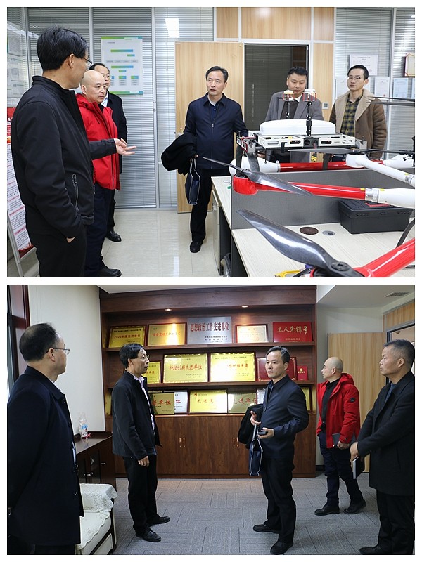 會后,馮凱一行參觀了公司物化探院無人機航空物探研發中心,仔細觀看了無人機航空物探技術裝備,聽取了對無人機航空物探創新工作及服務領域的簡要講解。