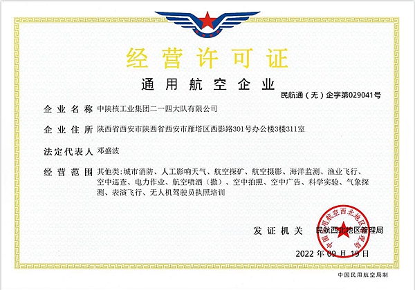 20229月19日,公司《民用航空企業(yè)經(jīng)營(yíng)許可證》順利通過航空探礦等8項(xiàng)增項(xiàng)審批,經(jīng)營(yíng)范圍擴(kuò)容達(dá)16項(xiàng),業(yè)務(wù)領(lǐng)域涵蓋無人機(jī)探礦、攝影、消防、電力、氣象、海洋漁業(yè)、科學(xué)實(shí)驗(yàn)、無人機(jī)駕駛員執(zhí)照培訓(xùn)等。